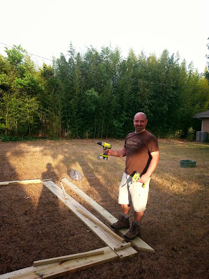 For Mother's Day May 10th weekend, I was given the first two of the planned veggie planting beds. They are made of pressure treated lumber and measure 4x12 feet and are 10 inches deep. Curtis build them with a 6 inch wide frame along the top of the bed, this makes it look nicer but also makes it much more comfortable to kneel or sit on the edge of the garden bed.